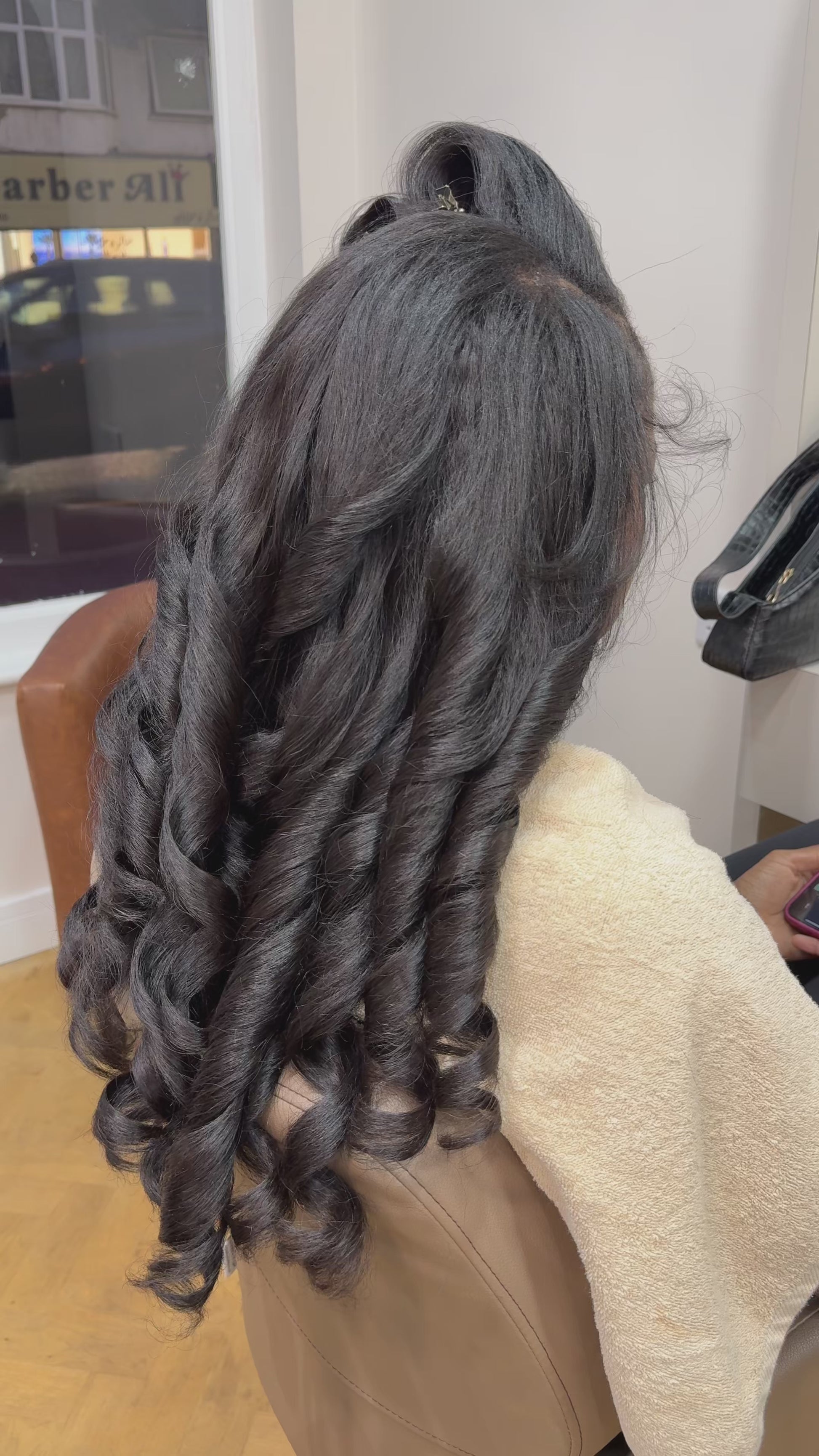 The hair can also be straightened and curled, returning back to its natural curl pattern when washed and conditioned.